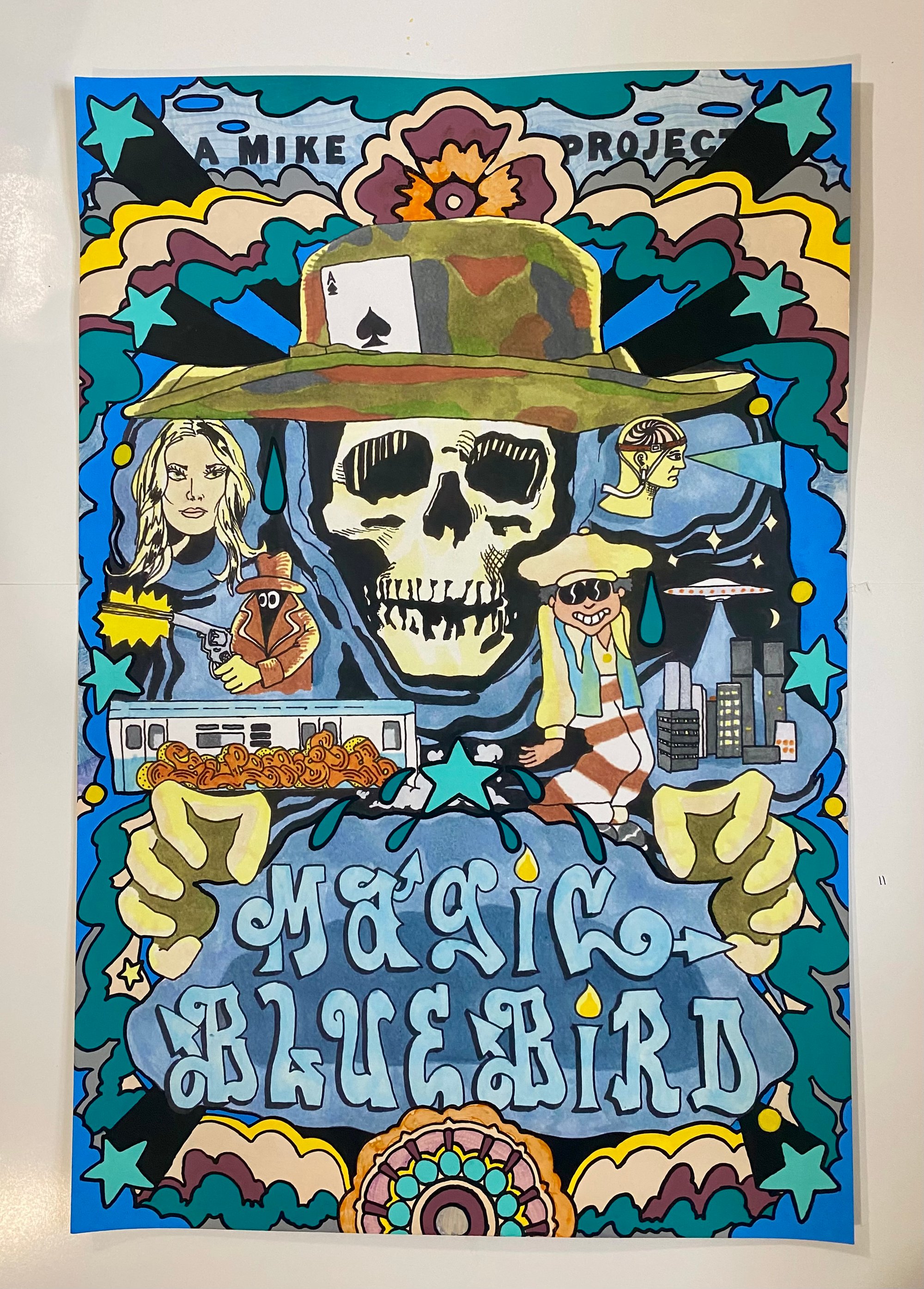 12”x18” Magic Bluebird print, hand embellished with paint pens and signed.