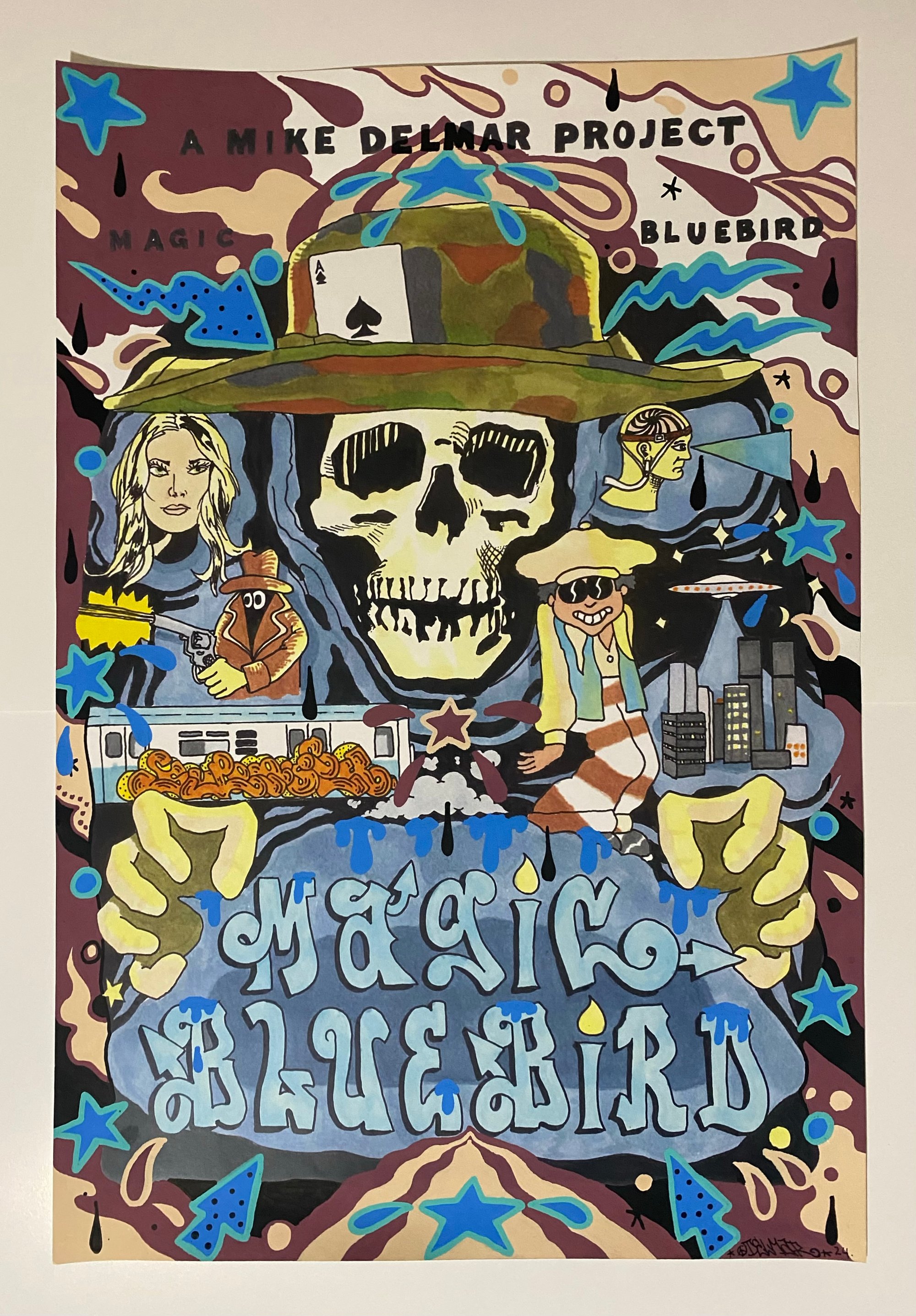 12”x18” print made for the premier of Magic Bluebird Dec 9th 2024, by hand embellished with paint pens and signed