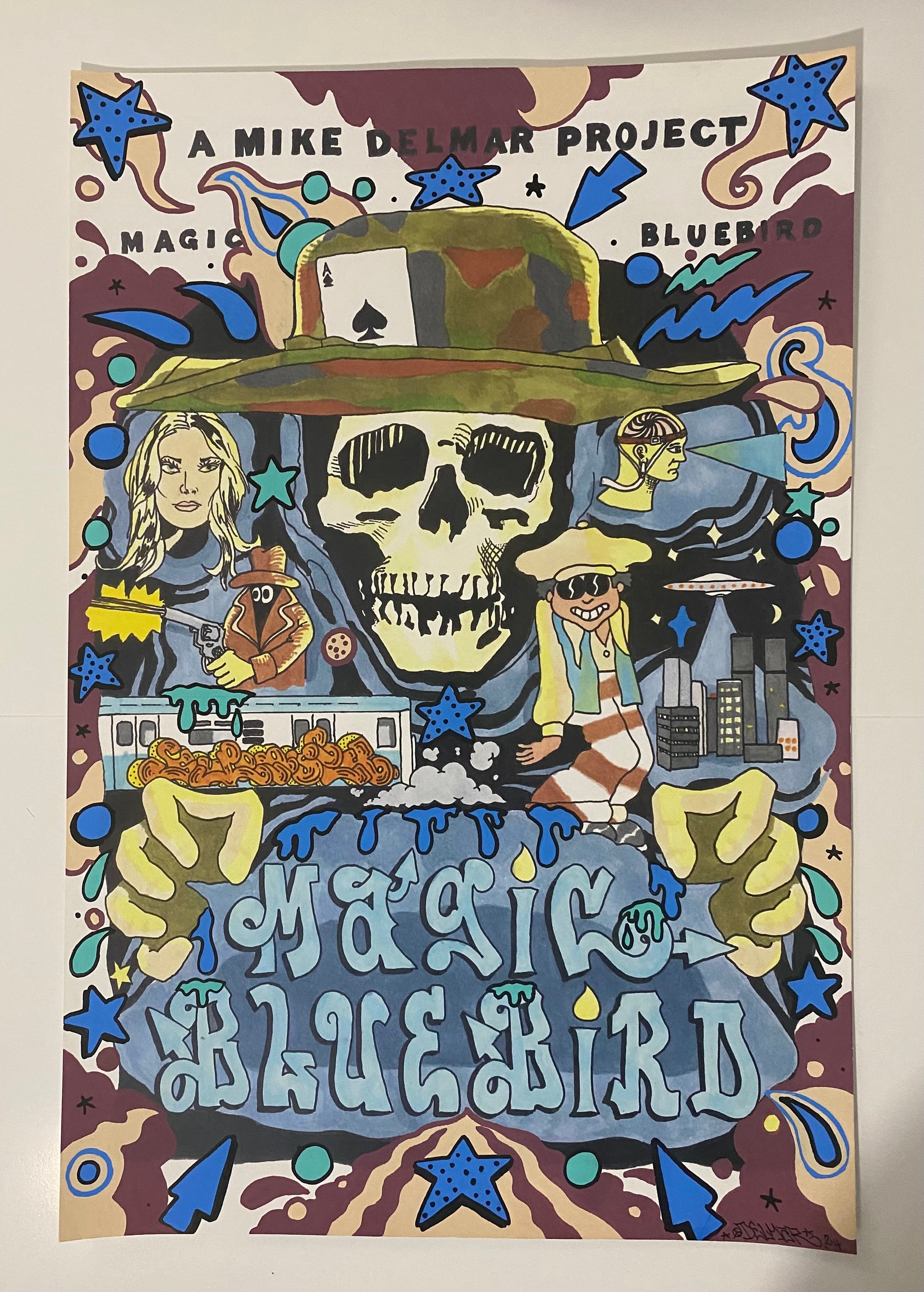 12”x18” print made for the premier of Magic Bluebird Dec 9th 2024, hand embellished with paint pens and signed